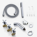 Wannenarmatur-Set zur Wandmontage, komplett mit Handbrause, Brausebogen, Wannenauslauf und Rohbauventil für eine einfache Installation und Kostenersparnis.