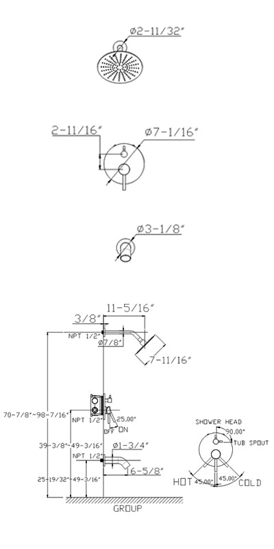 Ancho del cabezal de ducha: 7-11/16 pulgadas