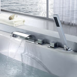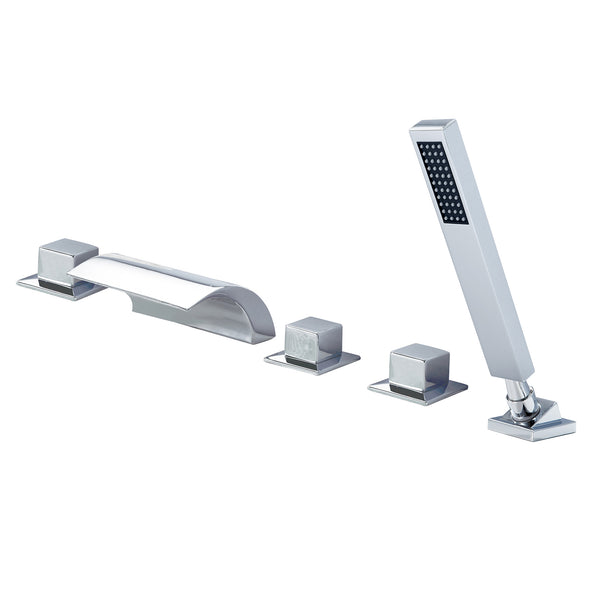 Ideal for home bathrooms and DIY enthusiasts, the roman waterfall bathtub faucet combines a soothing waterfall flow with practical three-knob control for customized bathing. Its brass and stainless steel build ensures durability, while the hand shower offers flexibility for rinsing and cleaning. Designed to enhance contemporary spaces, this deck-mount bathtub faucet turns everyday routines into luxurious moments.