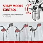 • 3. Multiple Spray Modes: The shower head and handheld offers 8 spray settings,with a 3-way water diverter that easily switches the water flow between the two showers,making your shower routine more efficient.