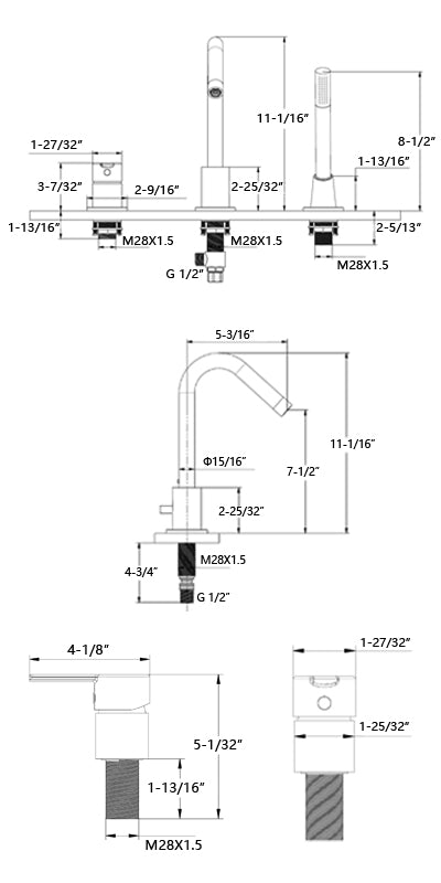 Con sus líneas continuas y su aspecto cilíndrico, este grifo para bañera romano de 3 orificios SUMERAIN añade un toque delicado y atemporal a su interior. Con una construcción de latón duradera y un cartucho de cerámica de alta calidad, este llenador de bañera para montaje en plataforma está diseñado para una larga vida útil. Incluye válvula de latón y mangueras de conexión de acero inoxidable para una fácil instalación. Cuenta con una ducha de mano de una sola función con boquillas de silicona fáciles de limpiar que le permiten eliminar fácilmente la acumulación de agua dura y cal para un mantenimiento sin complicaciones. Un mango ergonómico de una sola palanca proporciona control del agua y la temperatura para una experiencia de baño óptima. La ducha de mano de latón con ángulo inclinado ayuda a prevenir el daño húmedo al piso de madera causado por la caída de agua de la ducha de mano.
