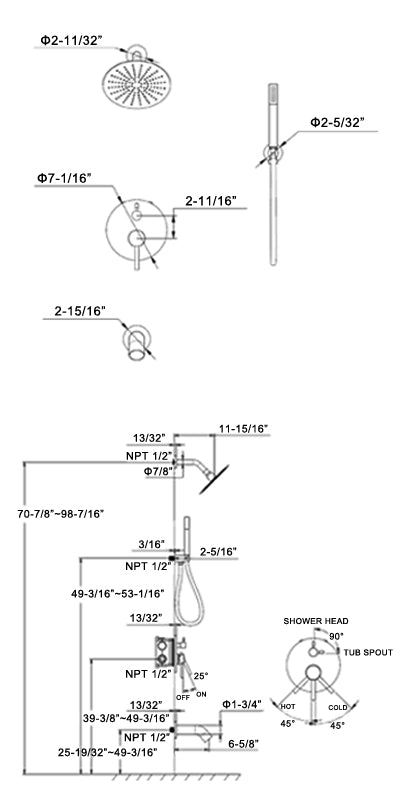 Shower tub faucets sets complete with shower head, tub spout and rough-in valve for your easy installation and saving costs!